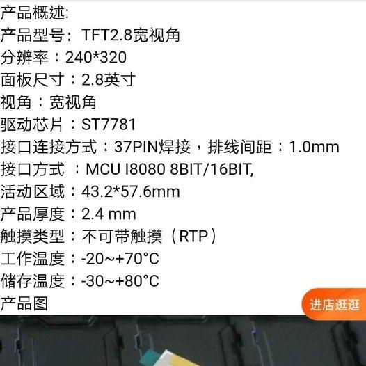 2.8寸 tft 液晶屏 st7781 (20) 每個$30
