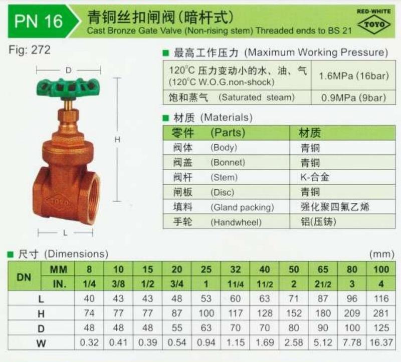 Italy Female Brass Gate Valve BS5154B.size:1"