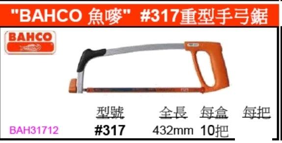 BAHCO 317 Hacksaw12” 鱼唛317鋸架12”@$95/nos