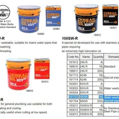 rex n50w thread cutting oil 16L @$1220/16L